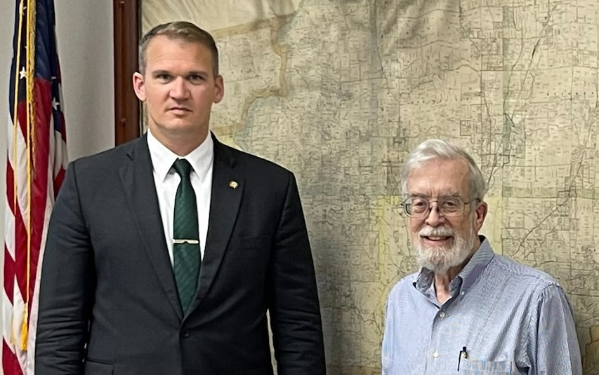 Recorder Scott Crowley welcomes the partnership with the Hamilton County Genealogical Society. Pictured here with long- time volunteer and honorary archivist Jim Dempsey. The Recorder’s office is pleased to continue the long-standing relationship with the Society in providing historic records and online access.
